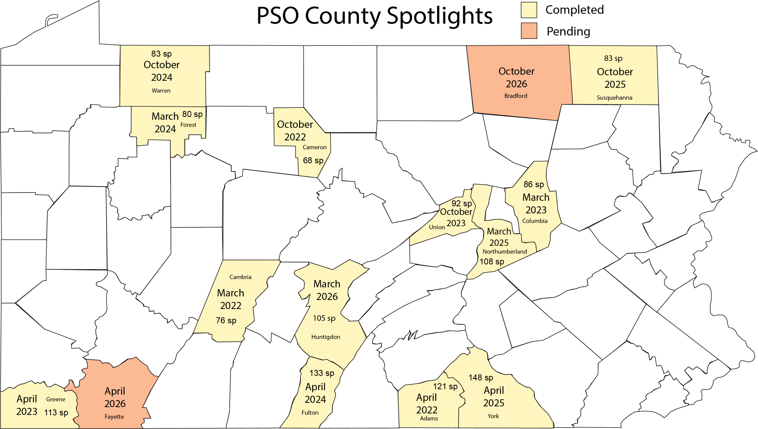 A County Spotlight is a PSO-organized weekend field trip to a county. We try to select lesser-birded counties in order to put the spotlight on them.