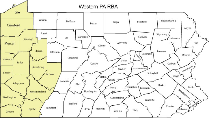 - WesternPA-RBA covers all of western Pennsylvania from the Ohio border east to and including Somerset, Cambria, Indiana, Jefferson, Forest, and Warren counties. Occasionally “extralimital” major rarities (ABA-level rarities) in eastern Ohio may also be reported to WesternPA-RBA.
